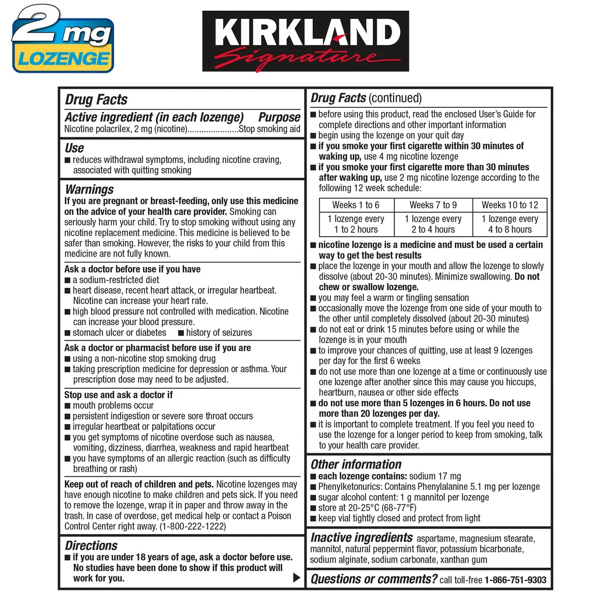 커클랜드 시그니처 퀴트2 민트 2mg 로젠지, 270조각