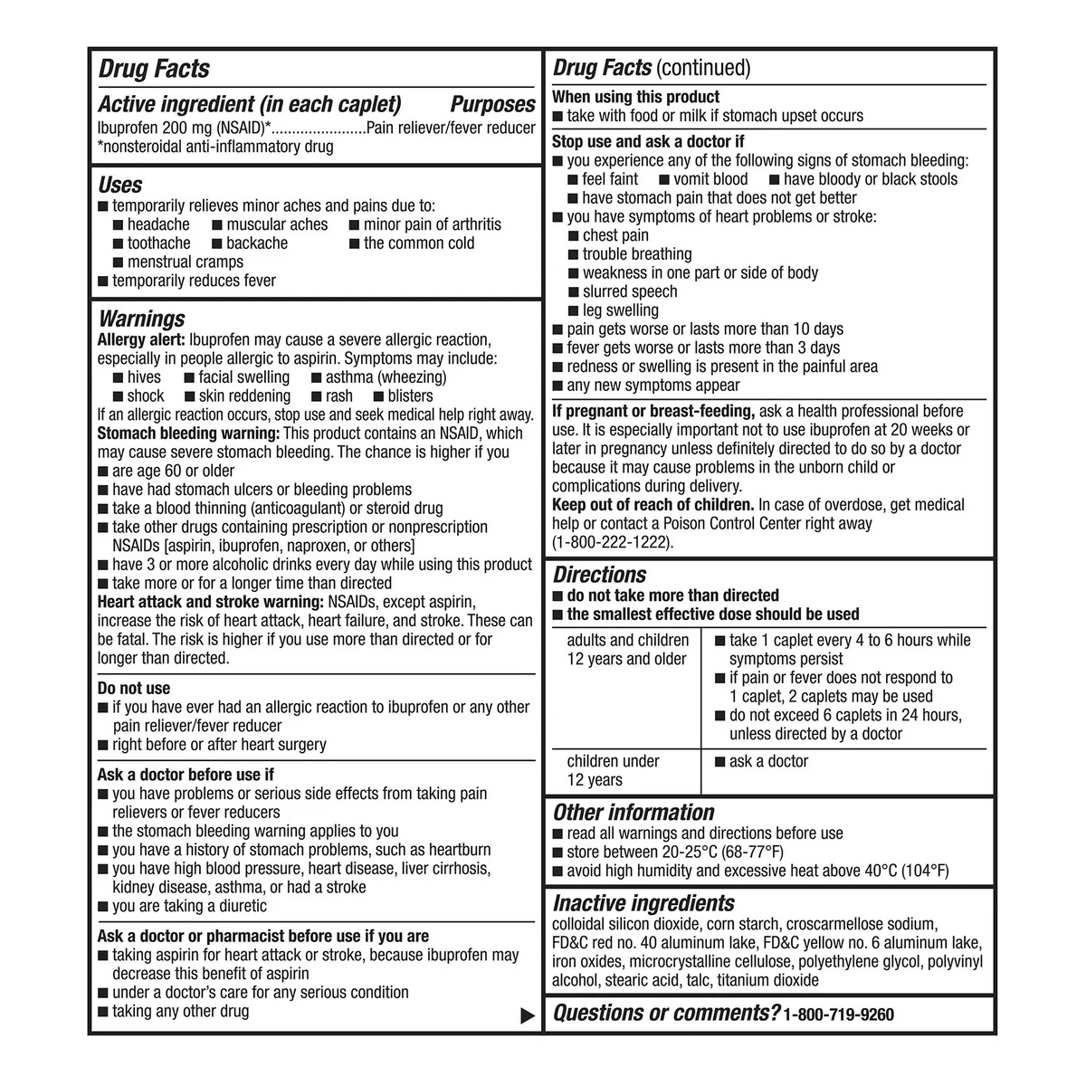 Kirkland Signature 이부프로펜 정제 200 mg은 가벼운 통증과 불편함을 완화하고 일시적으로 열을 내리기 위해 설계되었습니다. 이 정제는 Advil 이부프로펜 정제의 활성 성분과 유사하며, 근육통, 가벼운 관절염 통증, 치통, 요통, 생리통, 감기로 인한 통증 등에 효과적입니다.