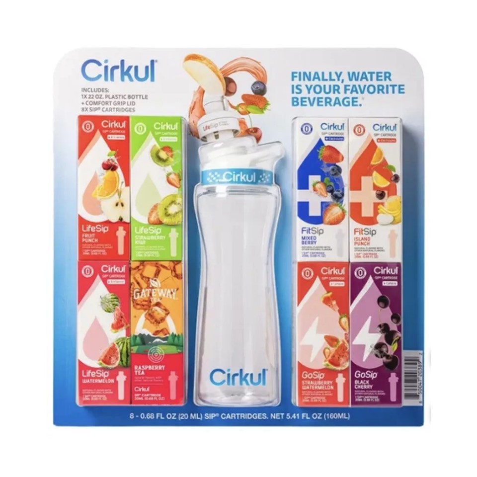 Cirkul Plastic Bottle Starter Kit with Eight Flavor Cartridges, 22oz.
