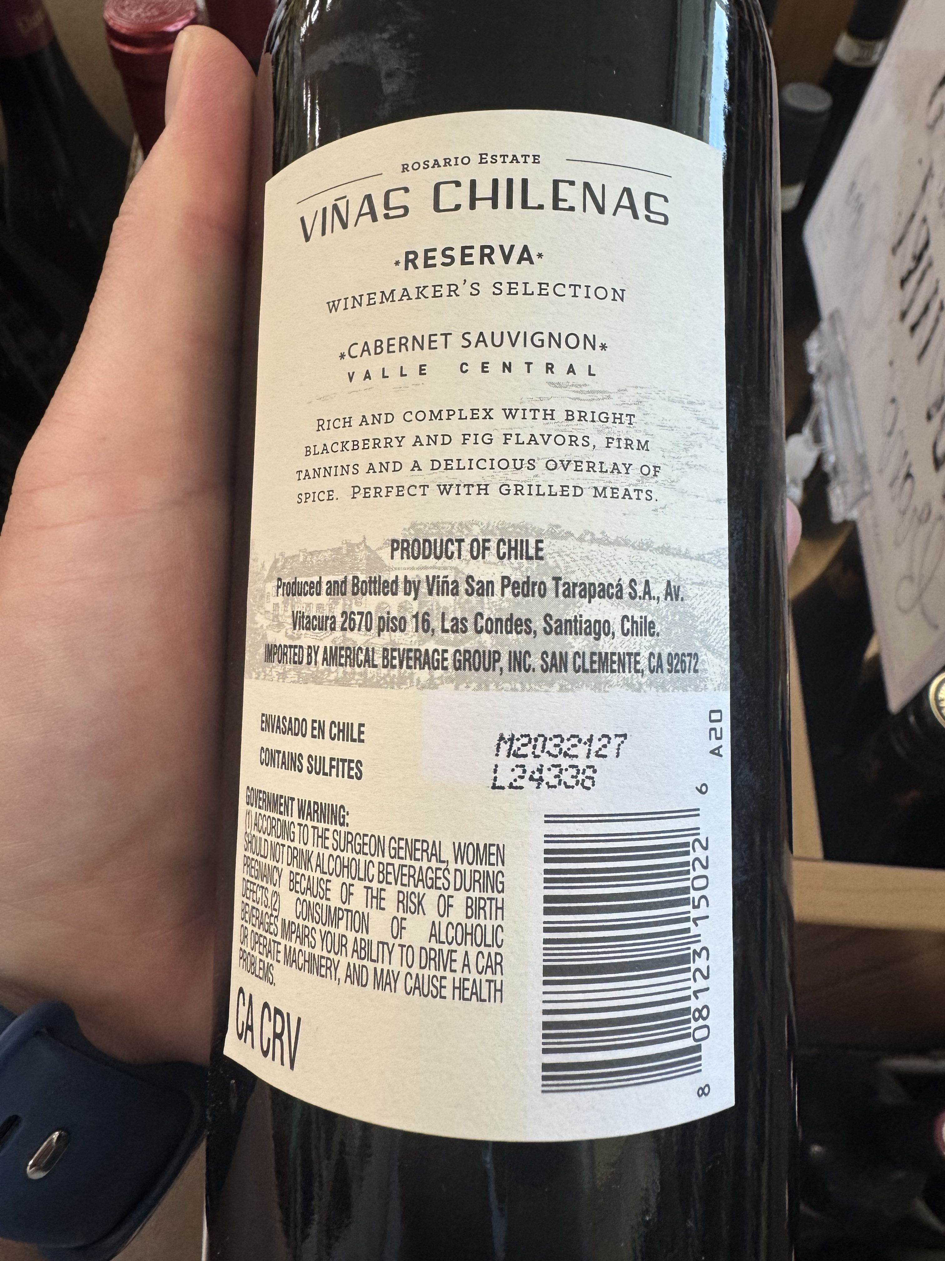 Viñas Chilenas Rosario Estate Cabernet Sauvignon 2024는 칠레 중앙 계곡(Central Valley)에서 생산된 레드 와인으로, 까베르네 소비뇽 품종을 100% 사용하여 양조되었습니다. 뛰어난 품질 대비 가격으로 많은 와인 애호가들에게 사랑받고 있습니다.